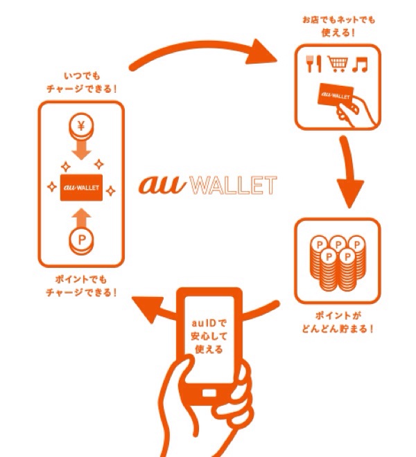 au WALLETは電子マネー。suicaとかと同じなんだけど、利用するとポイントが付くそうで。