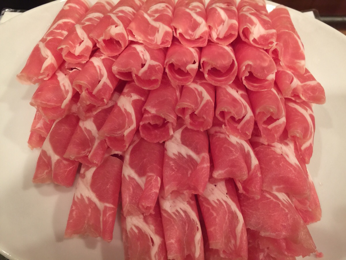 野菜がある程度煮えたら、薄切りのラム肉をしゃぶしゃぶ。