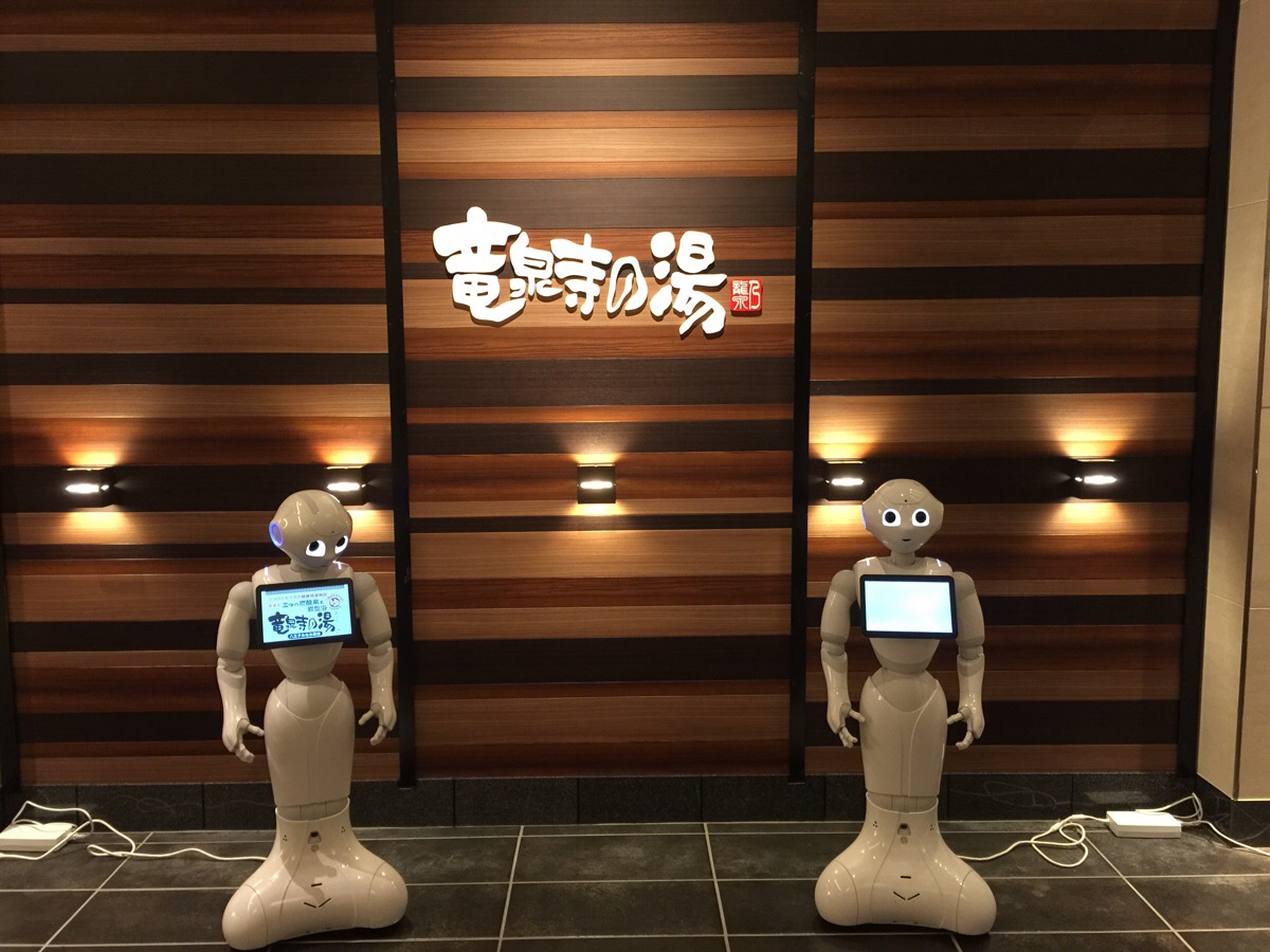 お出迎えはペッパーくん。