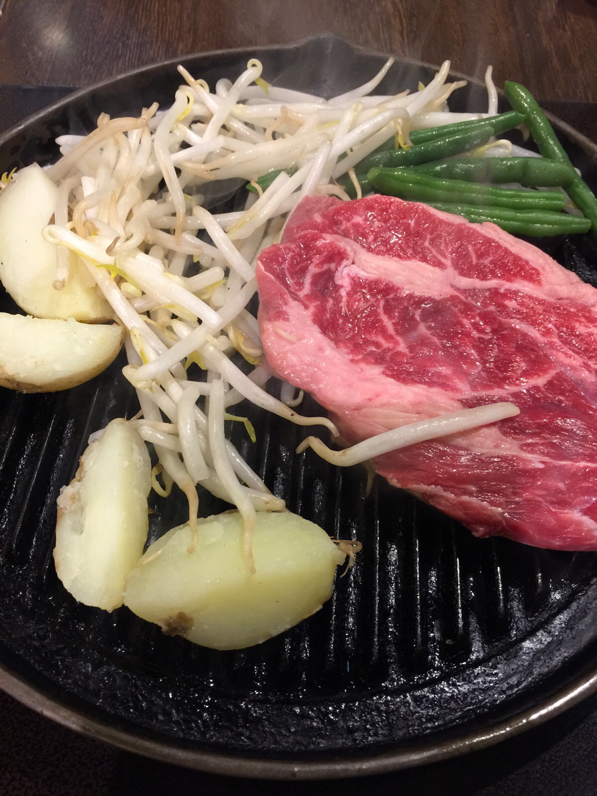 肉はやや筋があるものの硬くはなく良い感じ。いきなりステーキで安いセット頼んだら、味は良いけど硬かったからなあ。