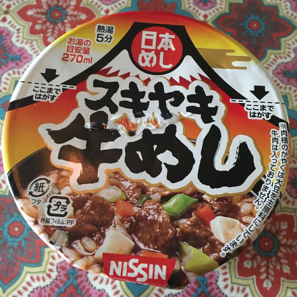 甘辛な割り下が効いている日清の「スキヤキ牛めし」