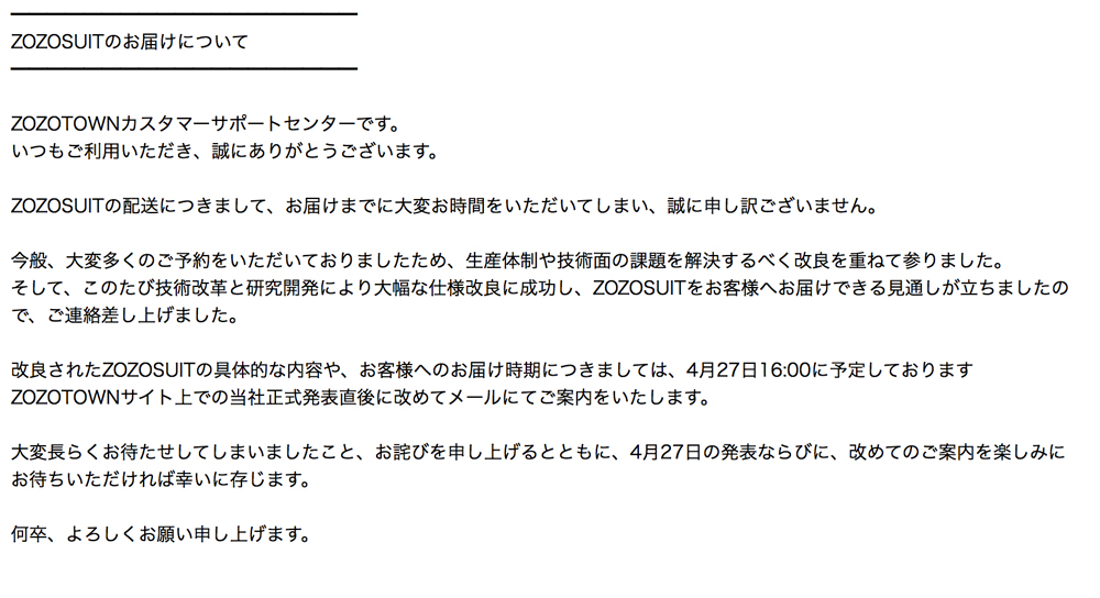 ZOZOSUITの発送時期につ…
