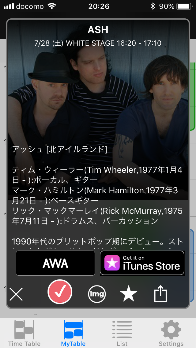 チェック部分をタップするとマイスケジュールとして登録できる。