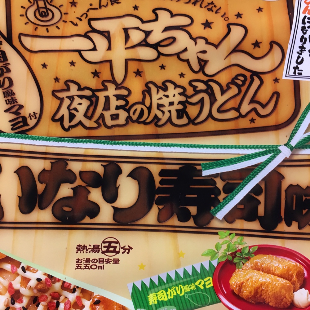 なんかスーパー行ったらセールで80円くらいで売っていた、一平ちゃん 夜店の焼うどん いなり寿司味を買ってみた。
