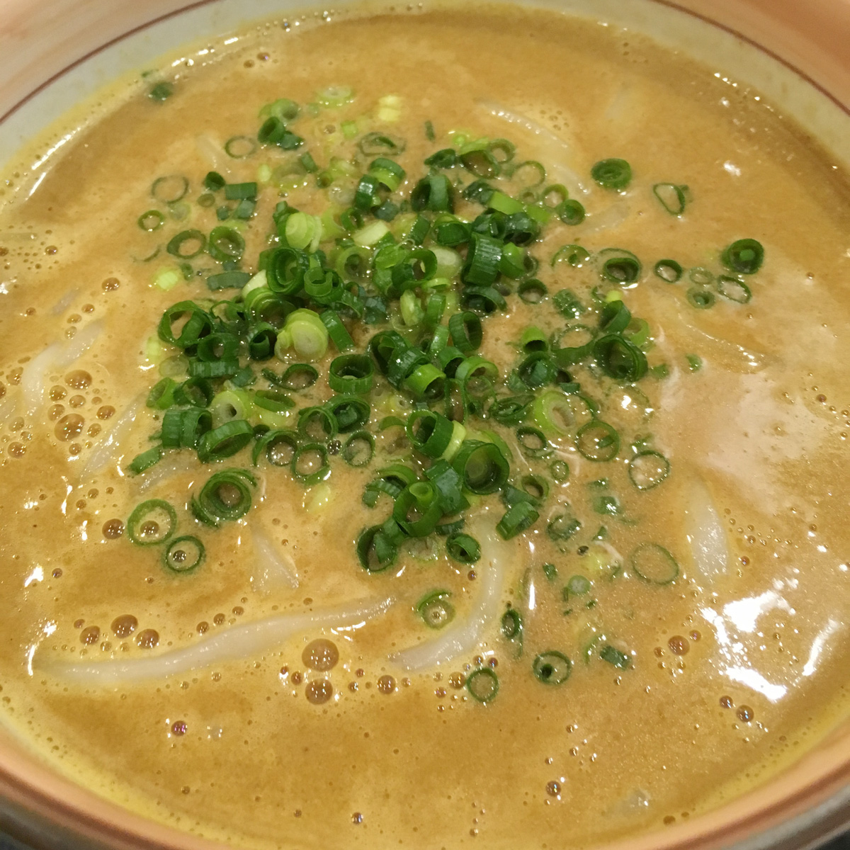 うどんにしてはやや細い気もする。硬めのつるっとしたうどん。