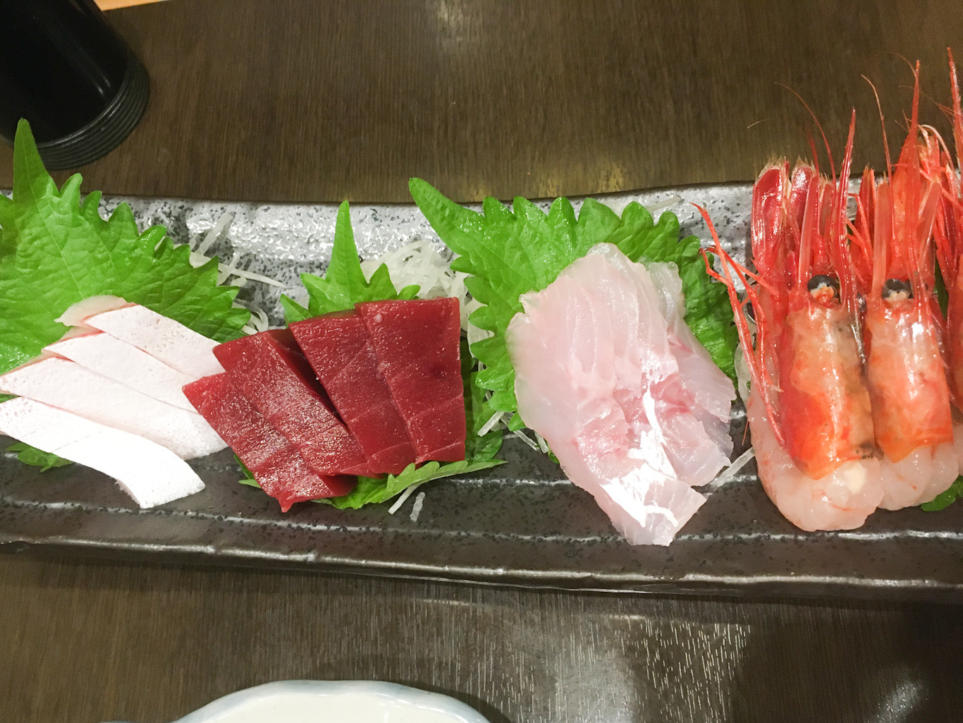 刺身4種盛りは毎回内容が違う。今回は海老が入ってた。海老初だなあー。とても甘くておいしい。
