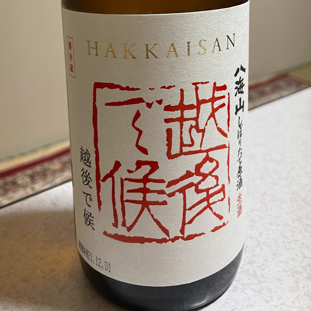 越後湯沢のスーパーに買い出しに行ったら普通に売っていた八海山の赤越後こと越後で候 赤ラベル。純米大吟醸のしぼりたて原酒。